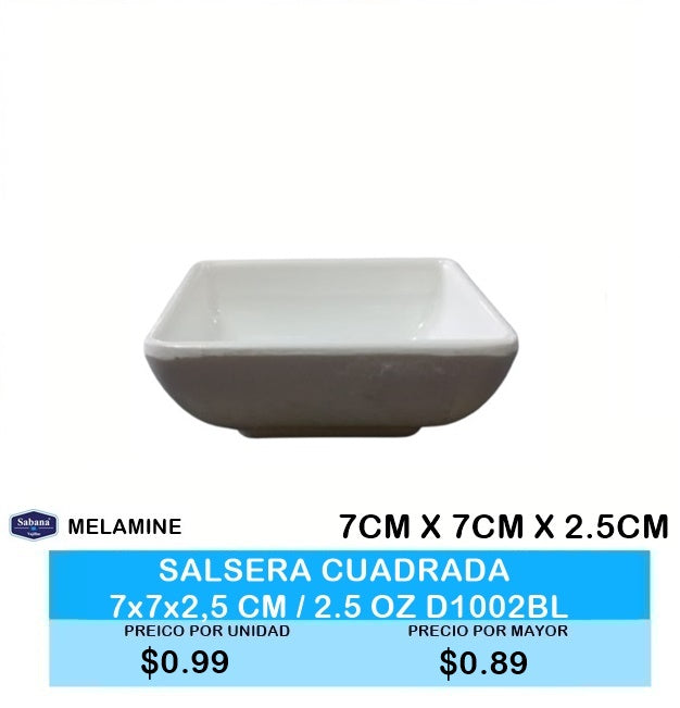 a Salsera Cuadrada Blanca D1002 es una pieza imprescindible para presentar salsas, dips, aderezos y porciones individuales con un estilo limpio, moderno y profesional. Su diseño cuadrado y su acabado blanco brillante se integran perfectamente en cualquier tipo de vajilla, aportando orden y elegancia al servicio de mesa.