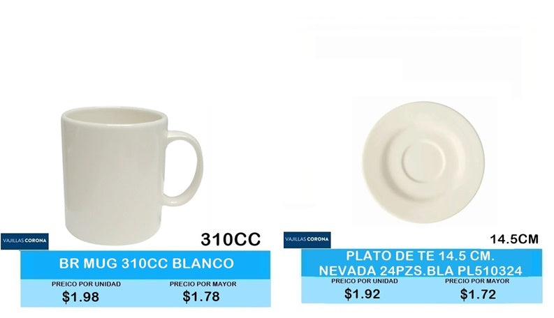 TAZA MUG 310 CC BLANCO PLATO DE TE NEVADA PL510324